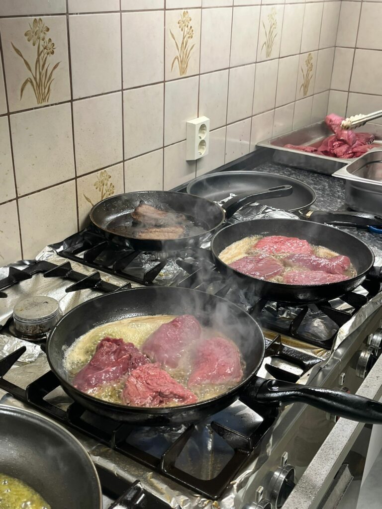 In het winkelcentrum maken we een plan, we lopen als een geoliede machine door de winkel en hebben binnen no time onze boodschappen. We lijken wel mieren. In het centrum zit Genk wat te drinken. Wij besluiten om naar het hotel te gaan. Iedereen loopt door maar ik blijf nog ff hangen. Uiteraard wordt er gevraagd of we sticks van hun willen lenen, of dat ze er nog moeten maken van papier etc. Maar dan krijg ik een Belgisch telefoontje binnen. Een mijnheer die in redelijk Nederlands uitlegt dat Andy voor zijn neus staat en of het goed is dat hij onze tas aan hem mee mag geven!!! Natuurlijk! Belgische mijnheer hangt op en ik schreeuw het uit! Genk kijkt me raar aan, maar heeft al snel door dat we onze sticks terugkrijgen. Ik ren naar buiten en vertel het nieuws. Om het te vieren gaan we weer naar binnen en drinken we er eentje. We gaan daarna naar het hotel, kleden ons om en gaan naar een restaurant. Los van het feit dat het niet naast de deur lag, stortregent het ook nog! Niet grappig. Silvio komt ons ophalen en het moet gezegd worden, het restaurant was top. We hebben enorm gelachen en last but not least heerlijk gegeten. Rond 11u gaan we gezamenlijk naar huis. Het was een lange dag en morgen worden er prestaties verlangd!